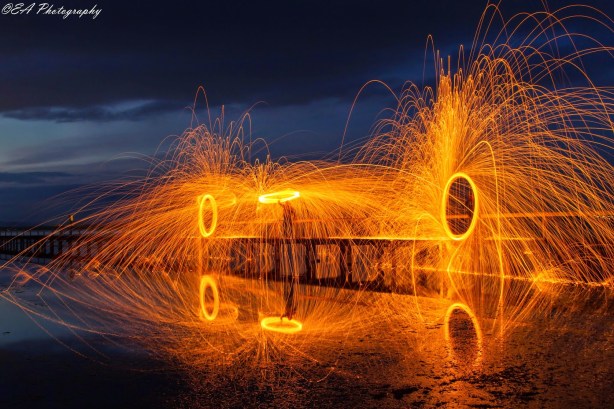 At first I didn’t understand it until my wife explained it to me. It is like a prolonged picture, instead of a picture of a moment it is a picture of a longer period of time. Most things in the picture stay the same but the lights that move layer through the open lens, creating a magnificent display. A good example is the picture below that was created by spinning burning steel wool. It struck me that if you look at the light produced by the burning wool in real time it seems insignificant, but if you look at the picture of the layered light it is magnificent.